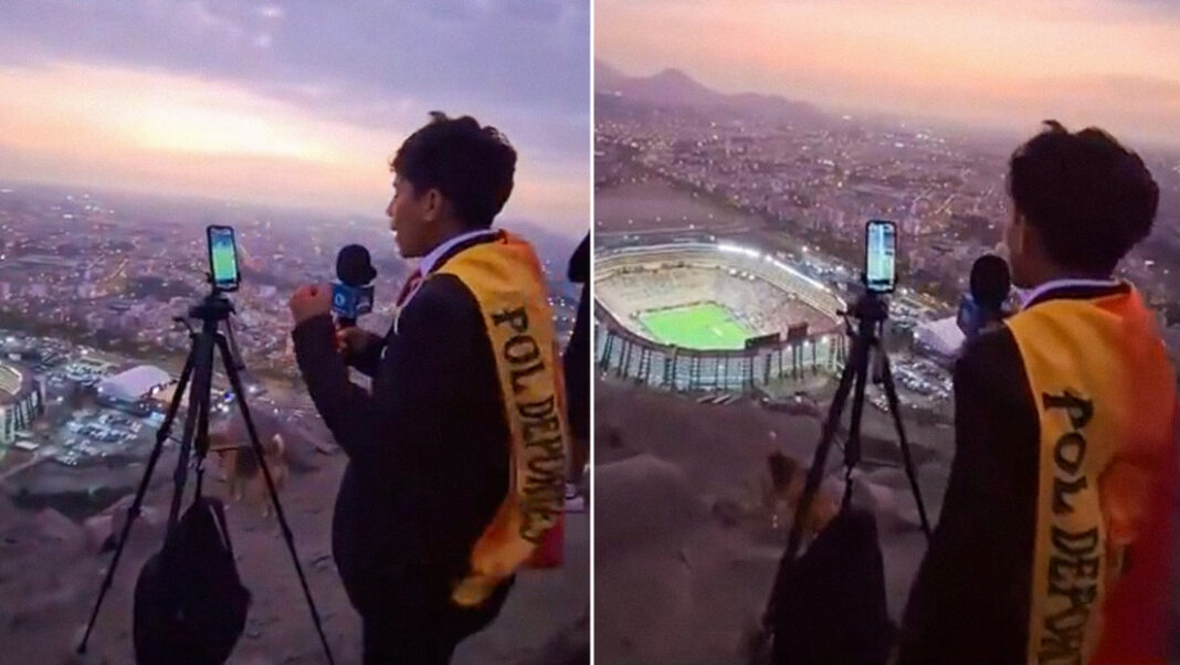 El muchacho, identificado como Luis Andrade, de 22 años, emprendió su trayecto en bus desde su ciudad natal con apenas una mochila, su teléfono y un pequeño micrófono. Sin boleto para ingresar al estadio, decidió no rendirse. Al llegar, buscó un punto alto desde el cual pudiera tener vista parcial de la cancha y transmitir el partido a sus seguidores.