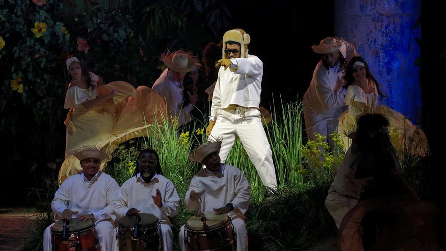 Más adelante, Benito Antonio Martínez Ocasio, conocido mundialmente como Bad Bunny, se trasladó al escenario secundario denominado La casita, una estructura que emula una vivienda tradicional puertorriqueña, ubicada en el centro del Coliseo de San Juan.