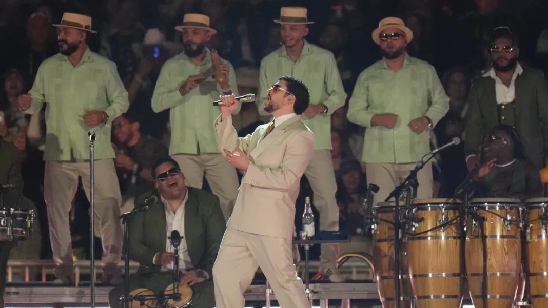 Bad Bunny se resbala en pleno show inaugural en México