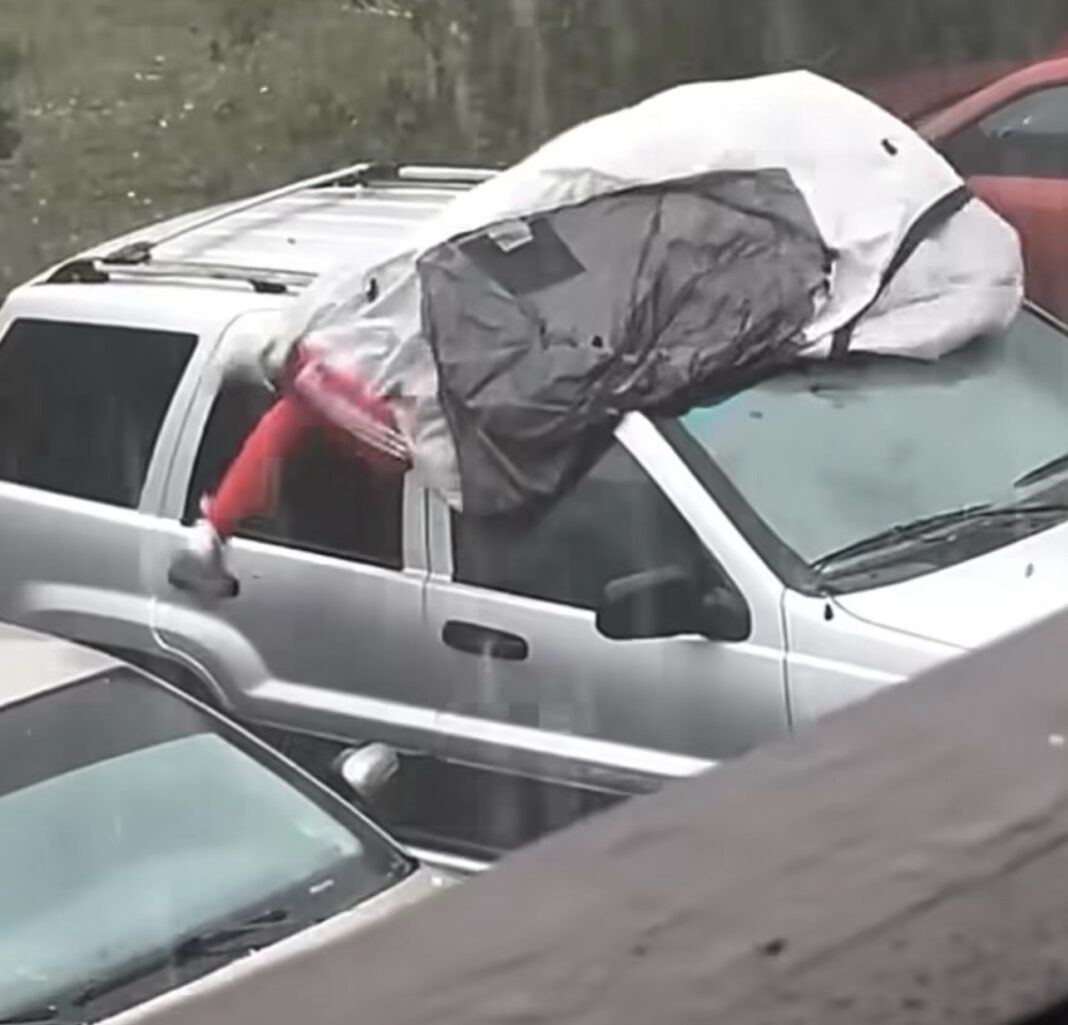 En medio de una inesperada tormenta de hielo, un residente de is decidió actuar de forma poco convencional para proteger su vehículo.