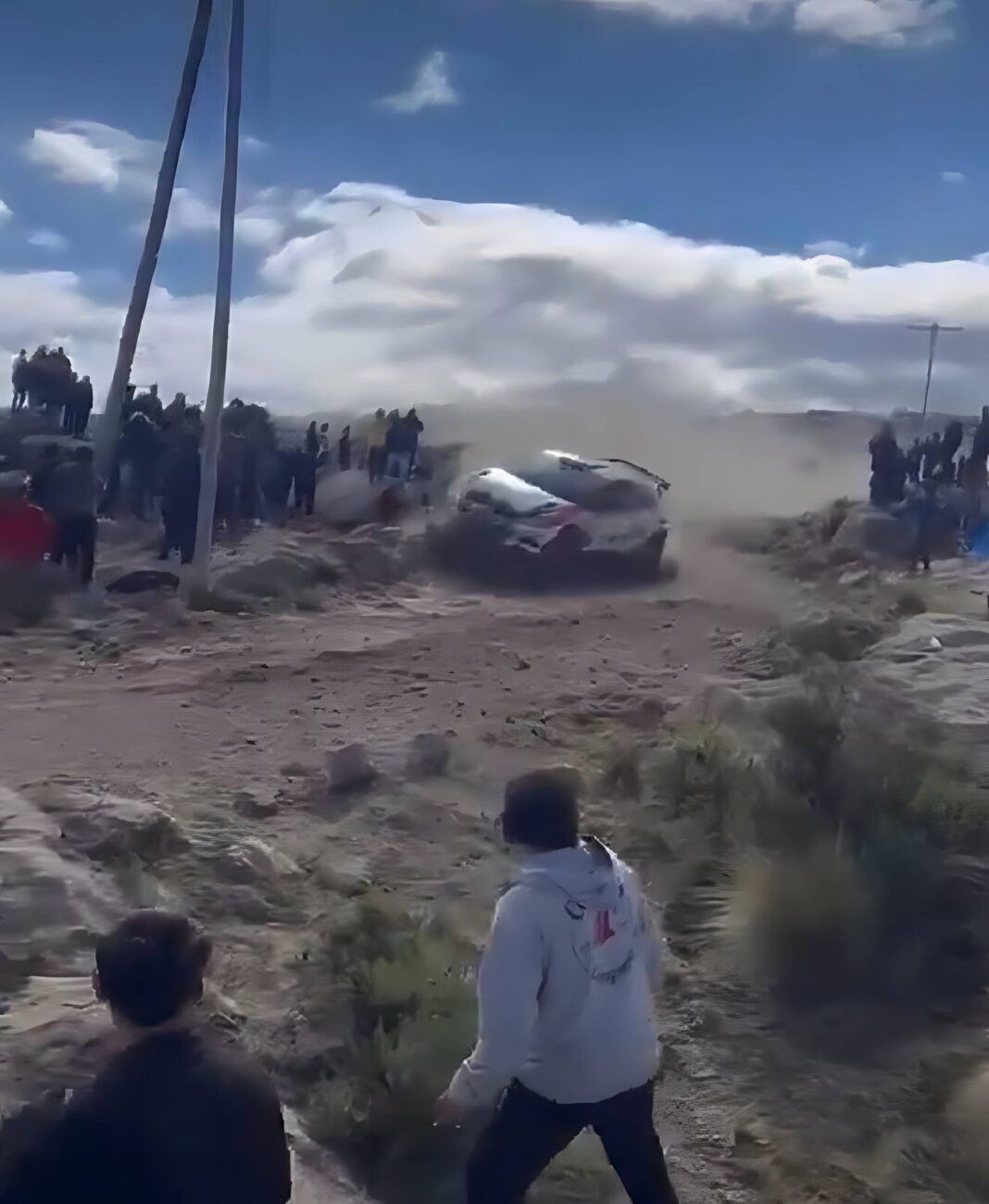 Según testigos, todo ocurrió en cuestión de segundos. Un vehículo de competición perdió el control a gran velocidad, comenzó a dar vueltas de forma descontrolada y terminó impactando directamente contra una zona donde se encontraba el público. El impacto fue brutal.