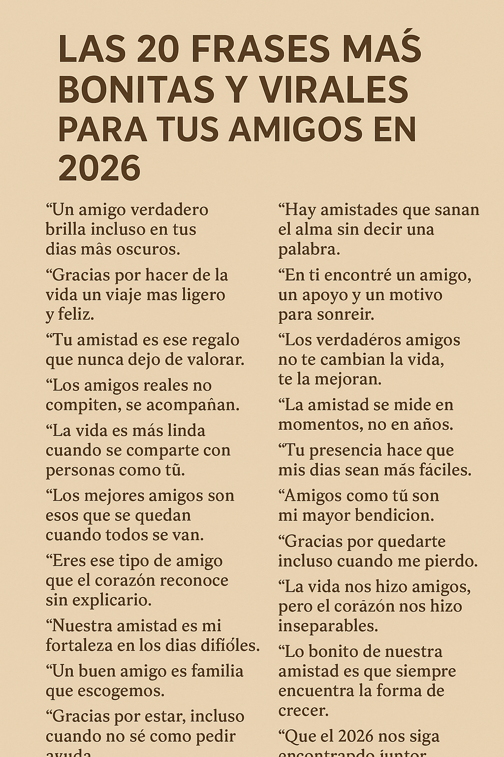 A continuación, presentamos una recopilación de las 20 frases más bonitas y virales para dedicar a tus amigos en 2026, ideales para compartir en cualquier ocasión.