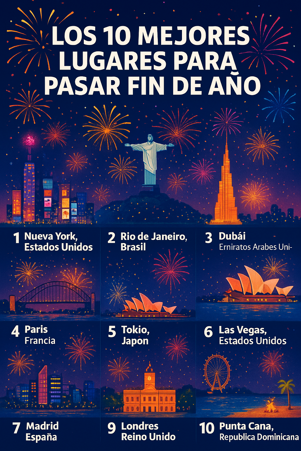 A medida que se acerca el final del 2025, miles de viajeros buscan dónde vivir una despedida de año realmente memorable. Entre celebraciones icónicas, fuegos artificiales espectaculares y ciudades llenas de energía, estos son los 10 mejores lugares para recibir el Año Nuevo según tendencias turísticas, popularidad en redes sociales y experiencias compartidas por viajeros alrededor del mundo.