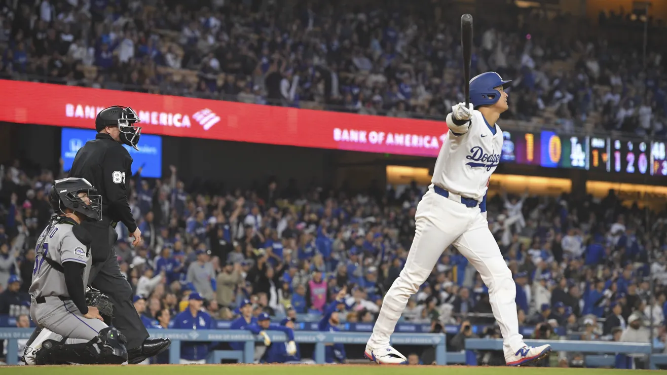 Abajo 1-0 en el primer episodio, los Dodgers vapulearon al abridor venezolano Germán Márquez. Ohtani lo saludó con un batazo que se fue hasta lo más alto de las tribunas del jardín derecho, un bombazo de 448 pies que empató el marcador 1-1. Fue su sexto cuadrangular de la temporada.