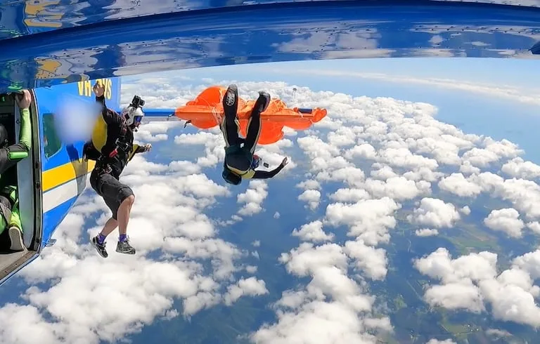 Salto extremo termina en susto cuando paracaidista queda atrapado en un avión