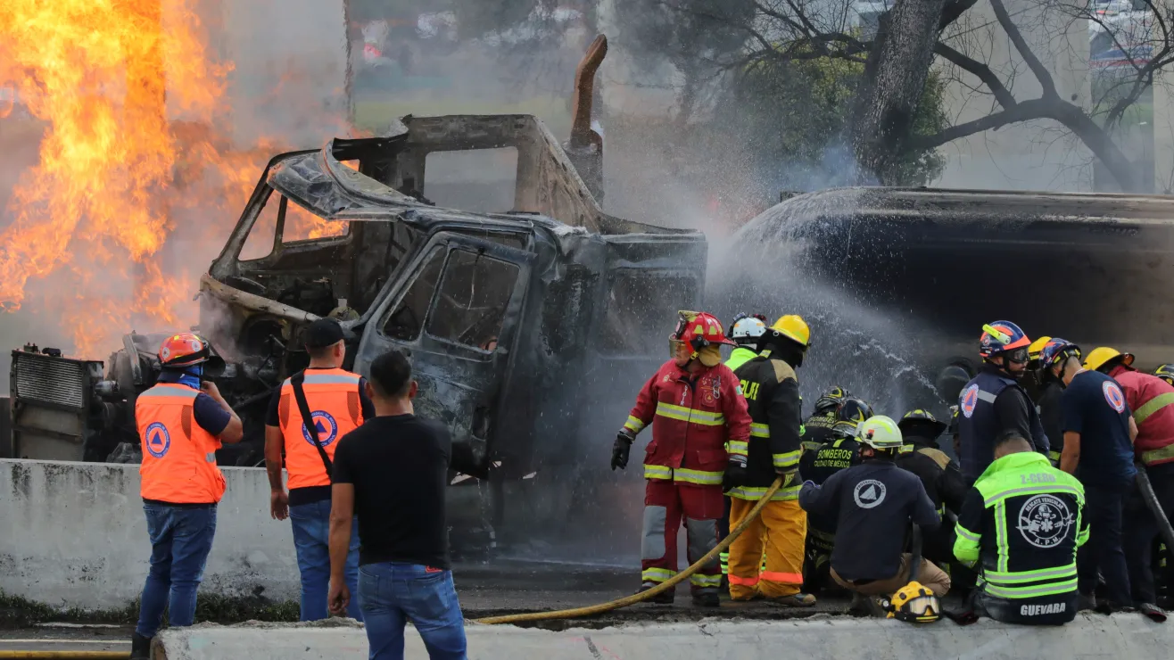 El accidente ocurrió la tarde del miércoles, cuando una pipa con capacidad para 49,500 litros volcó y explotó en la Calzada Ignacio Zaragoza, a la altura del Puente de la Concordia, en la alcaldía Iztapalapa. Las labores de limpieza y los peritajes aún continúan en el lugar.