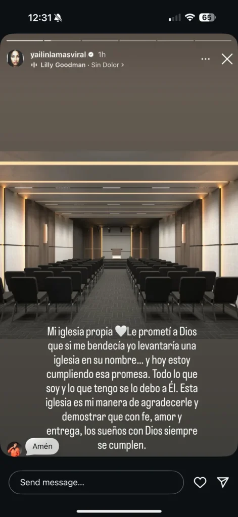 La información muestra un lado más personal y espiritual de la cantante, quien ha sido reconocida por su trayectoria en el dembow y su constante presencia en los medios. Yailin compartió que asistir a la iglesia es su manera de expresar gratitud y de confirmar que, con fe, amor y dedicación, todo es posible cuando se camina con Dios. En otro mensaje, hace un llamado a alguien conocida como “Chivirika” para que se una a ella los domingos y escuchen juntas la palabra divina.